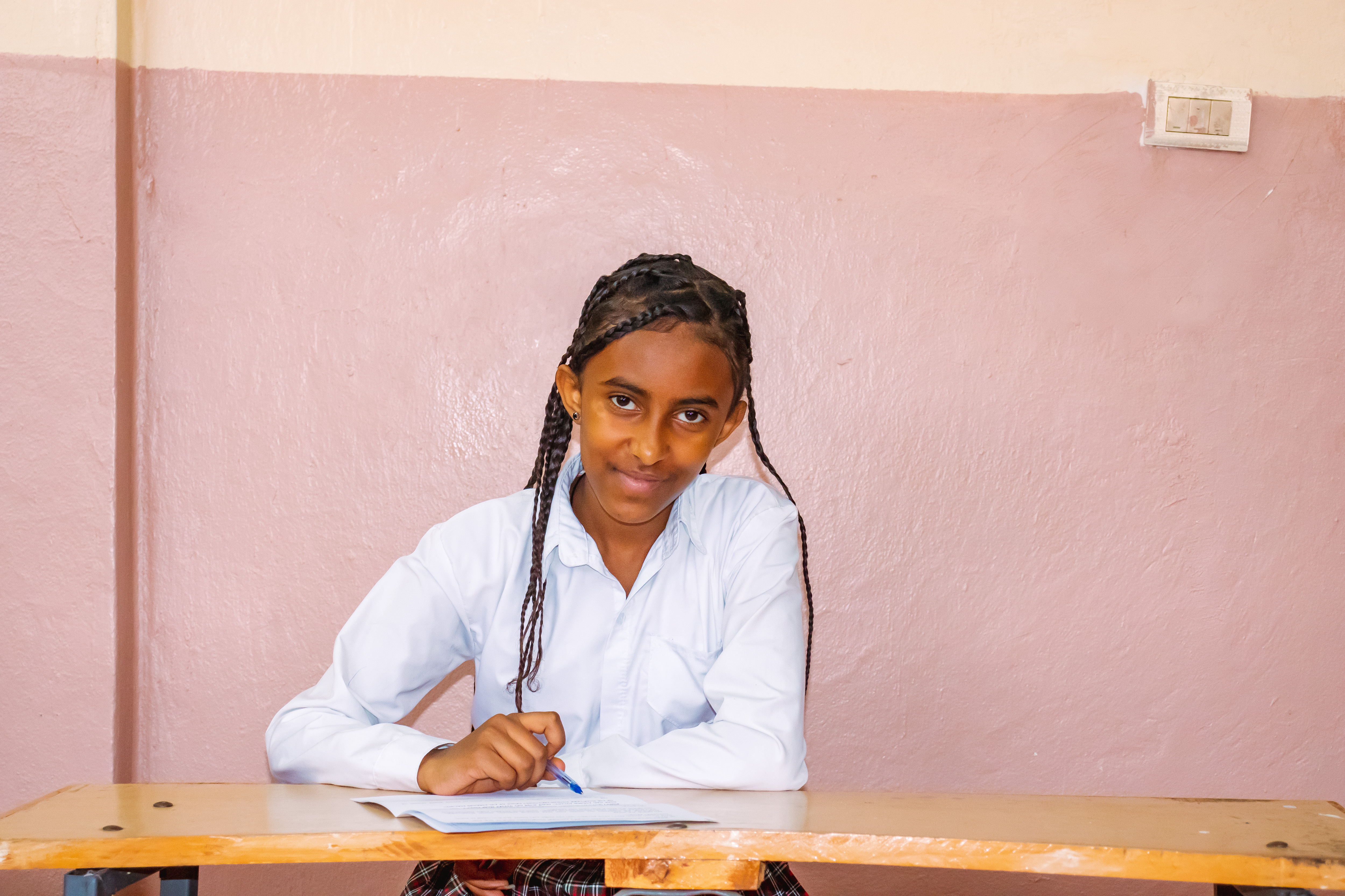 At Kebena Primary School in Addis Ababa, Ethiopia, 13-year-old Mazaa is known for her bright smile and curious mind. She lives with her parents and two siblings and loves solving math problems – especially the ones that make her think a little harder.