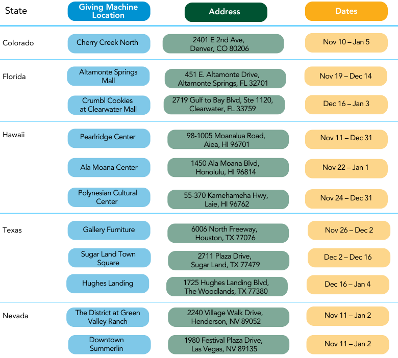 To learn more about the Light the World Giving Machines or to find a location near you please visit LightTheWorld.org.